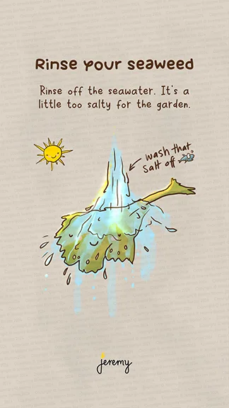 Rinse off the seaweed with fresh water. You don’t have to, but the salt can be too much for some plants.